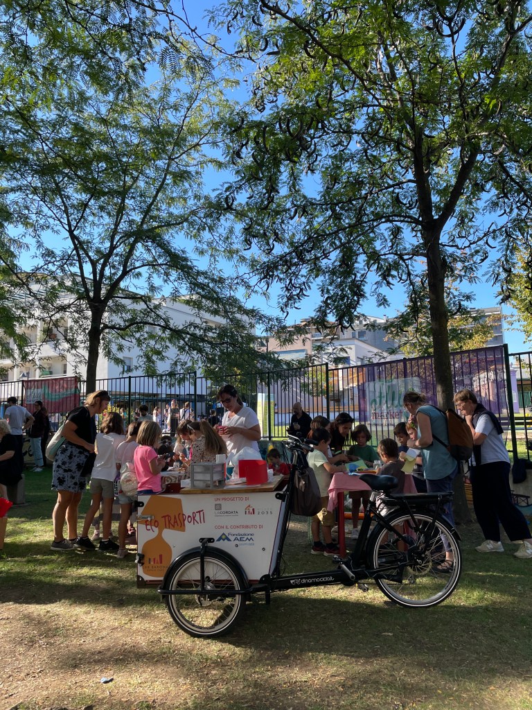 Grazie alla donazione di Fondazione AEM abbiamo a disposizione una cargo bike a pedalata assistita che è possibile prendere in prestito per effettuare piccoli traslochi o trasporto di libri, piante, attrezzi per la riparazione. Nell’ottica di un minore impatto ambientale e della condivisione, mettiamo a disposizione la bicicletta in forma gratuita per il quartiere.